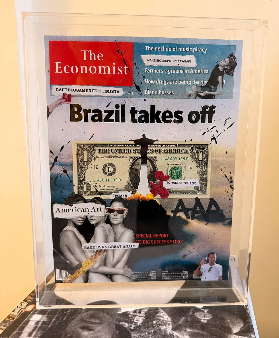 pela perfeição. A artista utiliza diversas técnicas de colagem, desde a sobreposição de imagens até a inclusão de objetos